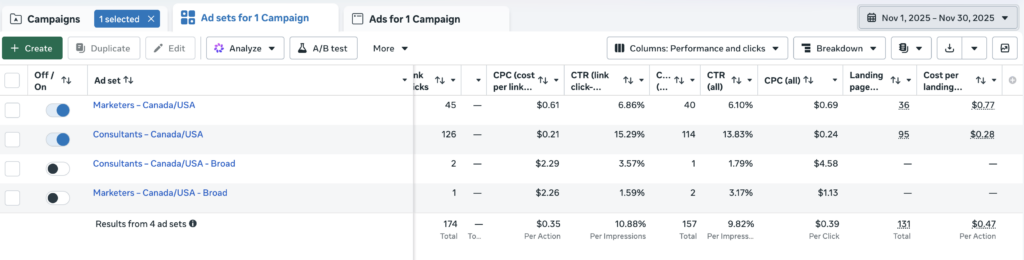 • Best-performing audience: Consultants – Canada/USA